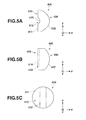 FIG. 5A is a side view of the collimator lens 400 along the y-z plane. FIG. 5B is a side view of the collimator lens 400 along the x-z plane. FIG. 5C is a rear view of the collimator lens 400 along the x-y plane. As shown in FIG. 5C, the collimator lens 400 has a circular external shape. The collimator lens 400 has an entrance portion 410 where incident light which is a laser ray is caused to enter, and this entrance portion 410 is formed at a left-hand side of the collimator lens 400 as seen in FIG. 5A. The collimator lens 400 has an exit portion 430 where the incident light which has entered the entrance portion 410 is caused to exit, and this exit portion 430 is formed at a right-hand side of the collimator lens 400 as seen in FIG. 5A.