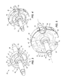 With reference to the construction of FIGS. 12-16, the housing 148 is journalled for rotation about the loader axis B by way of a bearing 165 disposed between the housing 148 and the shaft 144. This configuration may be applied to any construction in this disclosure. When the shaft 144 rotates, friction in the bearing 165 acts to couple the housing 148 for rotation in the direction of the shaft 144. Thus, the housing 148 is driven to rotate with the shaft 144. However, a stop 169 limits the range of motion of the housing 148 to a few degrees, e.g., about 5 to about 10 degrees, about 1 to about 30 degrees, about 1 to about 20 degrees, or about 1 to about 15 degrees, or about 1 to about 10 degrees, etc. When the stop 169 is reached, the shaft 144 rotates freely in the bearing 165 and the housing 148 remains against the stop 169. Projections 173 extending generally radially from the housing 148 and spaced apart by a radial gap 175 engage the stop 169 to inhibit rotating, or rocking, motion of the housing 148 in either direction, the stop 169 being disposed in the gap 175 radially between the projections 173. FIGS. 14-15 illustrate the housing 148 moving between a first position (FIG. 14) and a second position (FIG. 15) against the stop 169.
