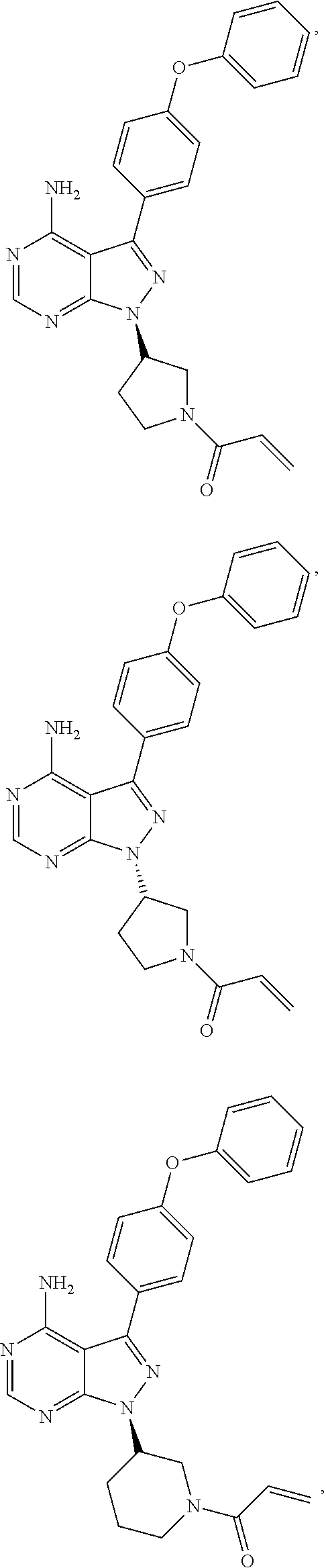 6 is H; and pharmaceutically active metabolites, or pharmaceutically acceptable solvates, pharmaceutically acceptable salts, or pharmaceutically acceptable prodrugs thereof. In some embodiments, the Bruton's tyrosine kinase inhibitor is (R)-1-(3-(4-amino-3-(4-phenoxyphenyl)-1H-pyrazolo[3,4-d]pyrimidin-1-yl)piperidin-1-yl)prop-2-en-1-one. In some embodiments, La is O. In some embodiments, Ar is phenyl. In some embodiments, Z is C(═O), NHC(═O), or S(═O)