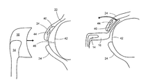 Referring now to FIG. 2 there is shown a diagram of a meibomian gland and duct 40, with a fat blockage 44. There is also shown an illustrative view of the meibomian gland and duct 40. As shown the meibomian gland and duct 40 may be located in the eyelid 24 near the eye globe 42.