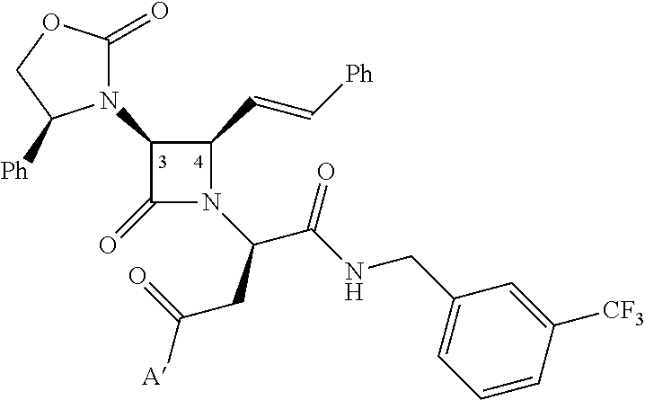 The method of any one of the preceding clauses wherein A′ is an amide of a substituted heterocycle attached at nitrogen. Substituents include alkyl, cycloalkyl, cycloalkylalkyl, heterocyclyl, heterocyclylalkyl, aryl, and arylalkyl. The method of any one of the preceding clauses wherein A′ is an amide of a heterocycle attached at nitrogen substituted with alkyl, cycloalkyl, cycloalkylalkyl, heterocyclyl, or heterocyclylalkyl.