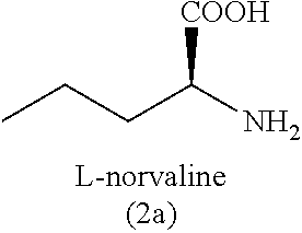 One challenge in developing a biocatalytic route for this type of reaction is the identification of an enzyme class that could be engineered to provide to carry out such reactions efficiently under industrially applicable conditions. Opine dehydrogenases are a class of oxidoreductase that act on CH—NH bonds using NADH or NADPH as co-factor. A native reaction of the opine dehydrogenases is the reductive amination of α-keto acids with amino acids. At least five naturally occurring genes having some homology have been identified that encode enzymes having the characteristic activity of opine dehydrogenase class. These five enzymes include: opine dehydrogenase from Arthrobactor Sp. Strain 1C (CENDH); octopine dehydrogenase from Pecten maximus (great scallop) (OpDH); ornithine synthase from Lactococcus lactis K1 (CEOS); β-alanine opine dehydrogenase from Cellana grata (BADH); and tauropine dehydrogenase from Suberites domuncula (TauDH). The crystal structure of the opine dehydrogenase CENDH has been determined (see Britton et al., “Crystal structure and active site location of N-(1-D-carboxyethyl)-L-norvaline dehydrogenase,” Nat. Struct. Biol. 5(7): 593-601 (1998)). Another enzyme, N-methyl L-amino acid dehydrogenase from Pseudomonas putida (NMDH) is known to have activity similar to opine dehydrogenases, reacting with α-keto acids and alkyl amines, but appears to have little or no sequence homology to opine dehydrogenases and amino acid dehydrogenases. NMDH has been characterized as belonging to a new superfamily of NAD(P) dependent oxidoreductase (see e.g., U.S. Pat. No. 7,452,704 B2; Esaki et al., FEBS Journal 2005, 272, 1117-1123).
