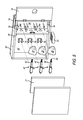 FIGS. 6-7 show a cartridge 22 and actuator 40. In a preferred embodiment, the actuator 40 includes an arm 42 that is movable between a first position and a second position. The cartridge 22 is attached to a distal end of the arm 42. As shown in FIG. 4, the arms 42 extend through openings 34 a in the divider member 34. Preferably, the cartridge 22 is removable from the arm 42 so that the cartridges 22 can be replaced during use. The connection between the cartridge 22 and the arm 42 can be any connection that allows the cartridge 22 to be replaced. In a preferred embodiment, the arm 42 includes a connection member 44 on the end thereof. The connection member 44 includes flanges 46 on the bottom thereof that include openings 46 a therein that receive a screw 48 to connect the connection member 44 to the arm 42.