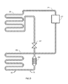 - the apparatus comprises a tubular device having a refrigerant entrance and a refrigerant exit, said device positioned in the heat exchange system between the expansion valve and the evaporator and a means associated with said device for removing heat from the refrigerant.