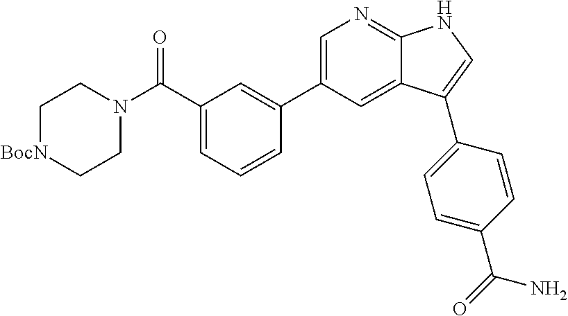 For example, compounds disclosed herein can be ranked for in vivo efficacy in a mouse model relevant to NeuroAids (D. Eggert, The Journal of Immunology, in press, November 2009.) Test compounds selected may be prioritized based on MLK3 potency and favorable exposure in the brain, but this is not an absolute requirement. Four-week-old male CB-17/IcrCrl-SCIDbr (CB17/SCID) mice may be purchased from Charles River Laboratory. HIV-1ADA-infected MDM (1.5×105 cells infected at an MOI of 0.1 in 5 ml) is stereotactically injected intracranially after 1 day of viral infection and referred to as HIVE mice. The test compound is then administered i.p. daily for 7 days at doses 0.5, 1.0, 1.5, 5.0, and 15.0 mg/kg/d (where, e.g., n=4 mice/treatment group). Vehicle only serves as the control. CB17/SCID mice receive intracranial (i.c.) injections of media (sham-operated) and serve as additional controls. Animals are treated with vehicle or test compound (i.e., a compound as disclosed herein) starting 1 d post-i.c. injection and for 7 d after MDM injections and test compound treatments. Dosing parameters, number per group, etc. may be varied as needed, and such variations are within the skill of one skilled in the art.