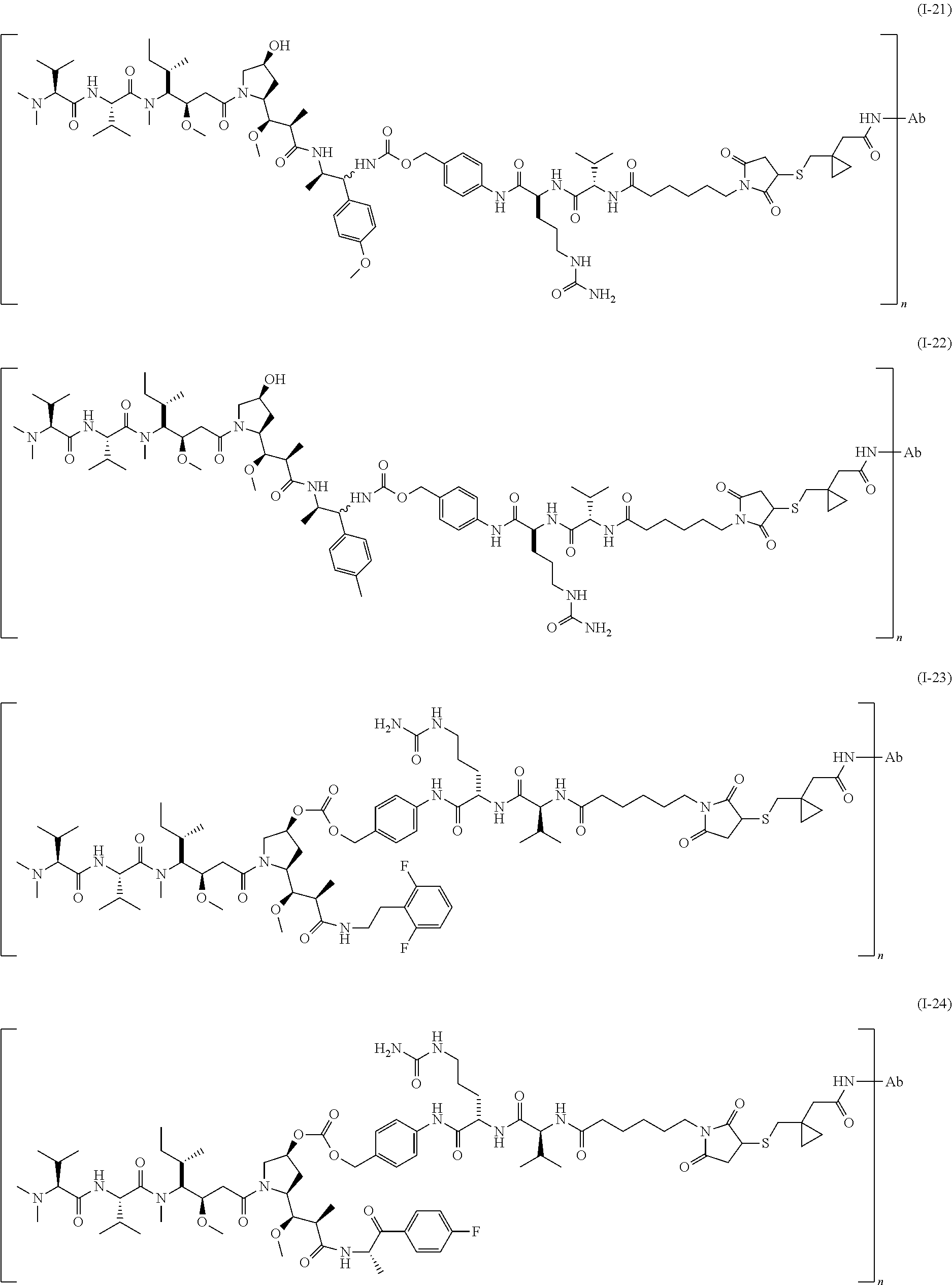 Representative antibody-linker-drug conjugates of the present invention are as follows: