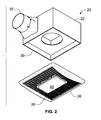 - an exhaust fan assembly 20 includes a fan housing 22 , a fan 24 , a grille 26 and a light module 28 .