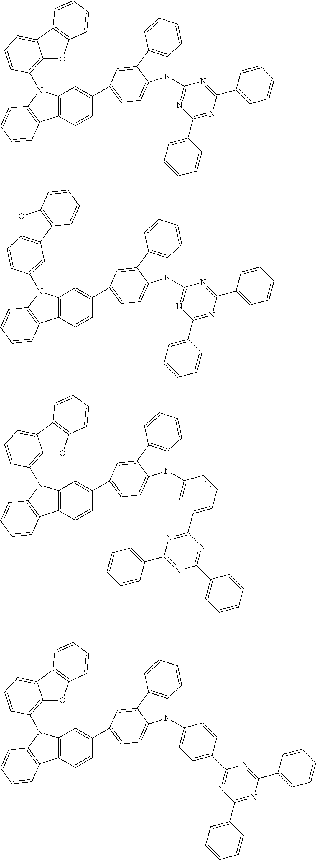 - FFJPUNUGNNXMGO-UHFFFAOYSA-N C1=CC=C(C2=CC(C3=CC=CC=C3)=NC(N3C4=C(C=CC=C4)C4=C/C(C5=CC6=C(C=C5)C5=C(C=CC=C5)N6C5=CC=C(C6=C/C7=C(\C=C/6)OC6=C7C=CC=C6)C=C5)=C\C=C\43)=N2)C=C1.C1=CC=C(C2=NC(C3=CC=CC=C3)=NC(C3=CC=CC(N4C5=C(C=CC=C5)C5=C/C(C6=CC7=C(C=C6)C6=C(C=CC=C6)N7C6=CC=C(C7=C/C8=C(\C=C/7)OC7=C8C=CC=C7)C=C6)=C\C=C\54)=C3)=N2)C=C1 Chemical compound C1=CC=C(C2=CC(C3=CC=CC=C3)=NC(N3C4=C(C=CC=C4)C4=C/C(C5=CC6=C(C=C5)C5=C(C=CC=C5)N6C5=CC=C(C6=C/C7=C(\C=C/6)OC6=C7C=CC=C6)C=C5)=C\C=C\43)=N2)C=C1.C1=CC=C(C2=NC(C3=CC=CC=C3)=NC(C3=CC=CC(N4C5=C(C=CC=C5)C5=C/C(C6=CC7=C(C=C6)C6=C(C=CC=C6)N7C6=CC=C(C7=C/C8=C(\C=C/7)OC7=C8C=CC=C7)C=C6)=C\C=C\54)=C3)=N2)C=C1 FFJPUNUGNNXMGO-UHFFFAOYSA-N 0.000 description 1