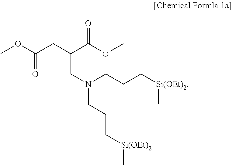 - CMYJXVOZYRPLLA-UHFFFAOYSA-N C(C)O[Si](CCCN(CCC[Si](OCC)(OCC)C)CC(C(=O)OC)CC(=O)OC)(C)OCC Chemical compound C(C)O[Si](CCCN(CCC[Si](OCC)(OCC)C)CC(C(=O)OC)CC(=O)OC)(C)OCC CMYJXVOZYRPLLA-UHFFFAOYSA-N 0.000 description 4