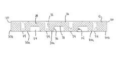 FIG. 4 illustrates a periodic tiling pattern used to cut stem mold segments 30 a from an EPS foam block 42. FIG. 4 illustrates the tiling pattern on a rectangular cross-section of the block 42. Except for stem mold segments 30 a that adjoin an outer face of the block, all outer surfaces of a stem mold segment 30 a are surfaces cut from the block 40. The illustrated tiling pattern has two tiling rows 44, 46 of interlocking stem mold segments 30 a extending across the width of the block 42 and the rows 44, 46 repeating across the height of the block 42. The stem mold segments 30 a in a row 44 are offset columnwise by one-half the segment width from the pair of facing stem mold segments 30 a in the adjacent row 46.