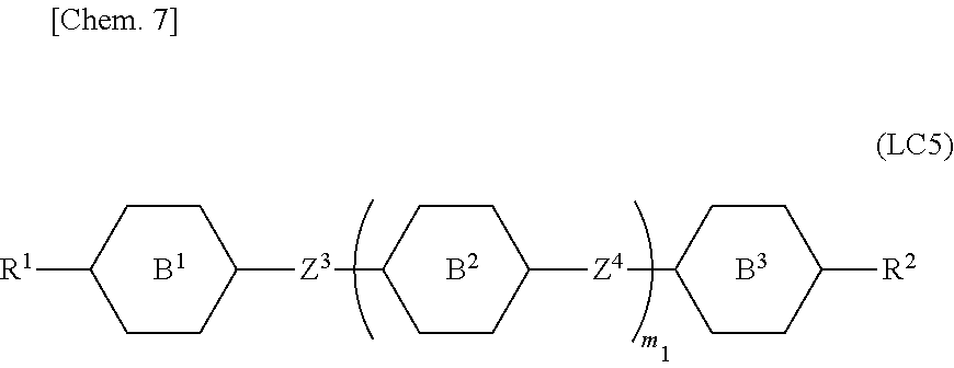 - (2) in the case where multiple compounds in which the ring structures other than the 2,3-difluorobenzene skeletons are the same as each other are used, a combination of compounds having different linking groups from each other has a priority; and