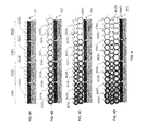 FIGS. 4A, 4B, 4C and 4D are cross-section views of a filter particle array made by the addition of different particles, represented by different shadings and sizes, during multiple attachment steps.