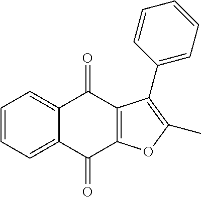 - provided that 2-(1-hydroxyethyl)-naphtho [2,3-b]furan-4,9-dione, 2-acetyl-7-chloro-naphtho [2,3-b]furan-4,9-dione, 2-acetyl-7-fluoro-naphtho[2,3-b]furan-4,9-dione, 2-acetylnaphtho [2,3-b]furan-4,9-dione, and 2-ethyl-naphtho[2,3-b]furan-4,9-dione are excluded.