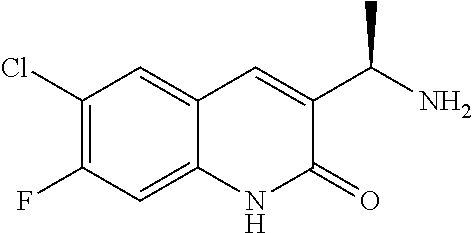 Table 6 below provides activity of each compound according to the legend that “++++” indicates an inhibition at a concentration <0.01 μM; “+++” indicates inhibition at a concentration between 0.01 μM and 0.1 μM of the disclosed compound; “++” indicates inhibition at a concentration from 0.1 μM to 1 μM of the disclosed compound; and “+” indicates inhibition at a concentration >1 μM for Enzyme IDH1 R132H, HCT116 IDH1 R132H, and HCT116 IDH1 R132C.