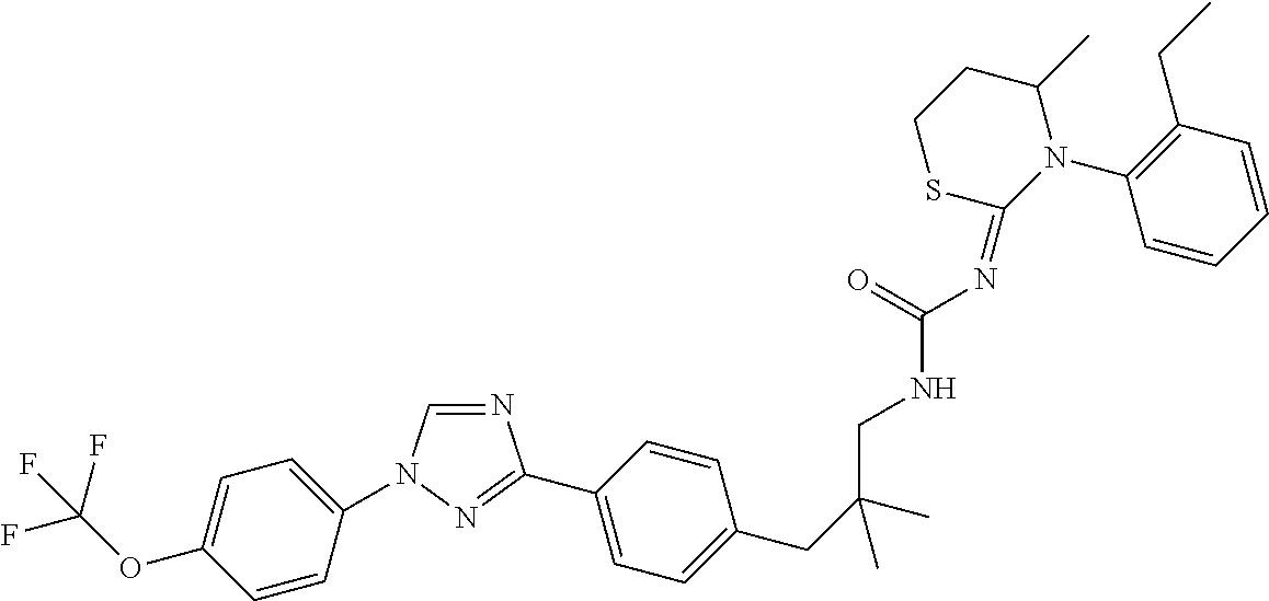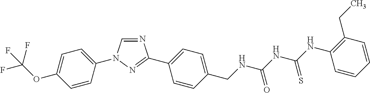 An isocyanate, Ar1-Het-Ar2-L-NCO (1-2), can be treated directly with an N-aryl thiourea (2-1) in the presence of about 0.1 to about 2 equivalents of an inorganic base such as cesium carbonate or sodium hydride, resulting in the formation of a thiobiuret (2-2, Scheme 2). The reaction can be performed at temperatures from about 0° C. to about 100° C., preferably from about 20° C. to about 80° C., in an aprotic solvent or solvent mixture chosen from acetonitrile, acetone, toluene, tetrahydrofuran, 1,2-dichloroethane, dichloromethane, or mixtures thereof, but use of acetonitrile is preferred.