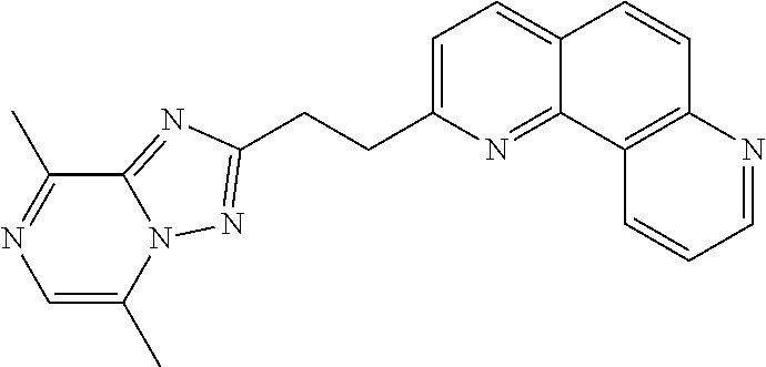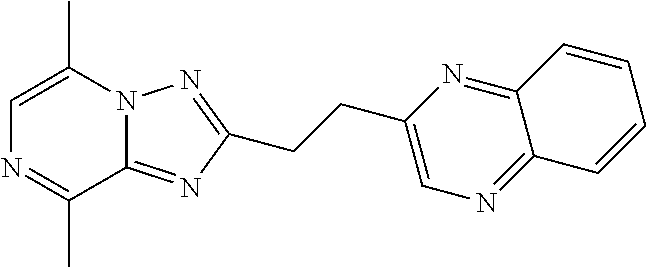 - ZESLDHFKVCAPTK-UHFFFAOYSA-N CC1=CN=C(C)N2N=C(CCC3=CC=C4C=CC=CC4=N3)N=C12 Chemical compound CC1=CN=C(C)N2N=C(CCC3=CC=C4C=CC=CC4=N3)N=C12 ZESLDHFKVCAPTK-UHFFFAOYSA-N 0.000 description 2