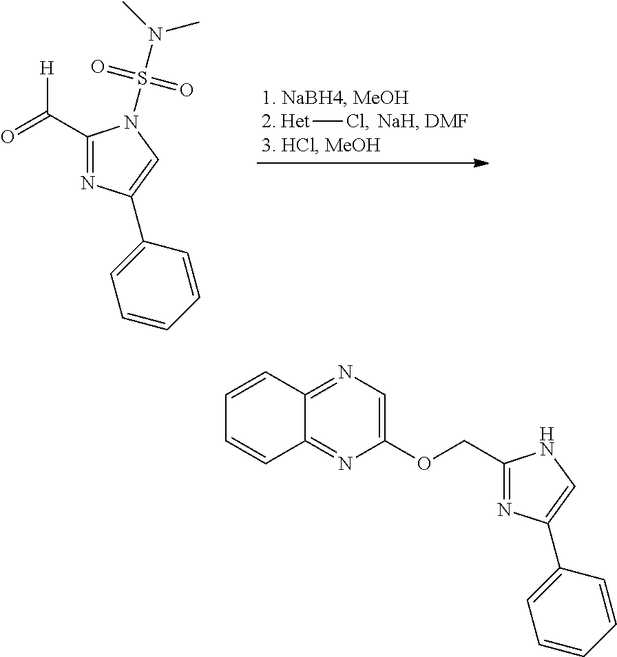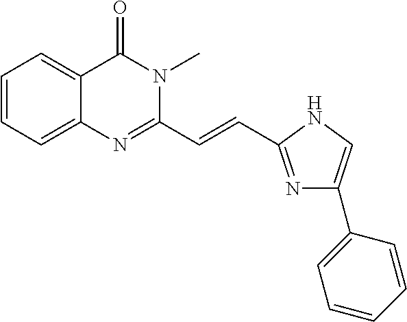- LQZOAXBUJMAJFV-UHFFFAOYSA-N O=C1NC(CCN2C=NC(C3=CC=CC=C3)=C2)=NC2=CC=CC=C12 Chemical compound O=C1NC(CCN2C=NC(C3=CC=CC=C3)=C2)=NC2=CC=CC=C12 LQZOAXBUJMAJFV-UHFFFAOYSA-N 0.000 description 2