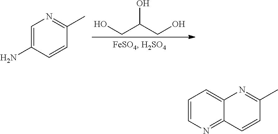 - DMQYROQIPNWJFP-PZQGYGGLSA-N C/C1=C/N=C(/C)C2=CC=C(CCC3=NC4=C(C=CC5=C4N=CC=C5)N3C)N=C21.CC(=O)O.CC1=C(N)C(Br)=C(C)N=C1.CC1=C2N=C(Br)C=CC2=C(C)N=C1.CC1=C2N=C(CCC(=O)O)C=CC2=C(C)N=C1.CC1=C2NC(=O)C=CC2=C(C)N=C1.CC1=CC(N)=C(C)C=N1.CC1=CC([N+](=O)[O-])=C(C)C=N1O.CC1=CC=C(C)N(O)=C1.CC1=CC=C(C)N=C1.CCC1=CC=C2C=CC=NC2=C1N.CCC1=CC=C2C=CC=NC2=C1N.CCOC(=O)/C=C/C1=C(C)N=CC(C)=C1N.CCOC(=O)/C=C/C1=NC2=C(C)C=NC(C)=C2C=C1.O=P(Br)(Br)Br.O=S(=O)(O)O.O=[N+]([O-])O Chemical compound C/C1=C/N=C(/C)C2=CC=C(CCC3=NC4=C(C=CC5=C4N=CC=C5)N3C)N=C21.CC(=O)O.CC1=C(N)C(Br)=C(C)N=C1.CC1=C2N=C(Br)C=CC2=C(C)N=C1.CC1=C2N=C(CCC(=O)O)C=CC2=C(C)N=C1.CC1=C2NC(=O)C=CC2=C(C)N=C1.CC1=CC(N)=C(C)C=N1.CC1=CC([N+](=O)[O-])=C(C)C=N1O.CC1=CC=C(C)N(O)=C1.CC1=CC=C(C)N=C1.CCC1=CC=C2C=CC=NC2=C1N.CCC1=CC=C2C=CC=NC2=C1N.CCOC(=O)/C=C/C1=C(C)N=CC(C)=C1N.CCOC(=O)/C=C/C1=NC2=C(C)C=NC(C)=C2C=C1.O=P(Br)(Br)Br.O=S(=O)(O)O.O=[N+]([O-])O DMQYROQIPNWJFP-PZQGYGGLSA-N 0.000 description 1