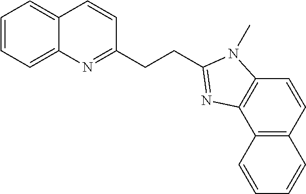 - IQXLHLPDOHCJMU-UHFFFAOYSA-N CN1C=C(C2=CC=CC=C2)N=C1CCC1=NC2=CC=CC=C2C=C1 Chemical compound CN1C=C(C2=CC=CC=C2)N=C1CCC1=NC2=CC=CC=C2C=C1 IQXLHLPDOHCJMU-UHFFFAOYSA-N 0.000 description 2