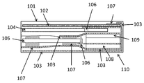 The first penetration zone 106 may further comprising a heat conduction through hole and/or slot which is sized to allow a portion of the heat remover 103 to penetrate. Therefore, the heat remover 103 on each side of the circuit board can be arranged through the first penetration zone 106 and form the complete heat conduction path from the heat generator on one side of the circuit board to the heat generator and/or energy module on the other side of the circuit board. The thickness or the diameter of the heat conduction via could be the same dimension range of the graphite/graphene/thermal film is as discussed in previous paragraphs