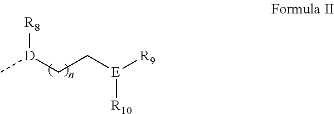 The term “amine” or “amino” as used herein refers to the form —NRdRe or —N(Rd)Re—, where Rd and Re are independently selected from alkyl, alkenyl, alkynyl, aryl, arylalkyl, carbamate, cycloalkyl, haloalkyl, heteroaryl, heterocycle, and hydrogen. The amino can be attached to the parent molecular group through the nitrogen. The amino also may be cyclic, for example any two of Rd and Re may be joined together or with the N to form a 3- to 12-membered ring (e.g., morpholino or piperidinyl). The term amino also includes the corresponding quaternary ammonium salt of any amino group. Exemplary amino groups include alkylamino groups, wherein at least one of Rd or Re is an alkyl group. In some embodiments Rd and Re each may be optionally substituted with hydroxyl, halogen, alkoxy, ester, or amino.