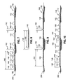 FIG. 3 is a schematic perspective view of a composite layup illustrating gaps extending lengthwise between the bands in one or more of the layers and forming an interconnected network of breather paths that may open to the exterior of the layup for venting entrapped moisture, air, and/or volatiles from the interior of the composite layup in accordance with one example embodiment;