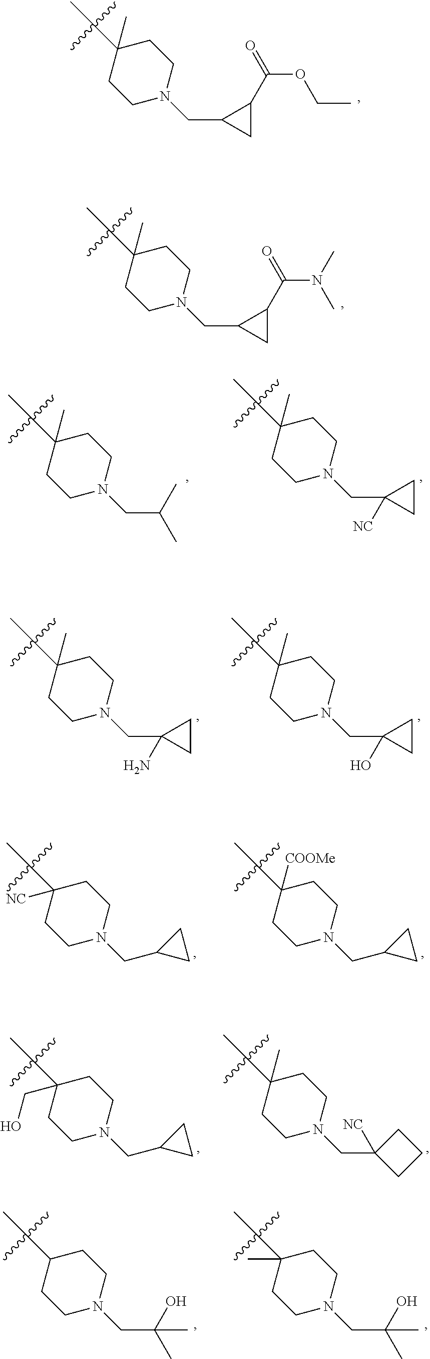 methyl, ethyl, n-propyl, isopropyl, —CH2C(CH3)(CH3)(OH) cyclopropyl, cyclobutyl, propylmethylene, cyclopropionyl, benzyloxy, trifluoromethyl, aminomethyl, hydroxymethyl, methoxy, formyl, methoxycarbonyl, methylsulfonyl, methylsulfinyl, ethoxy, acetyl, ethylsulfonyl, ethoxycarbonyl, dimethylamino, diethylamino, dimethylaminocarbonyl, and diethylaminocarbonyl;