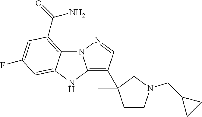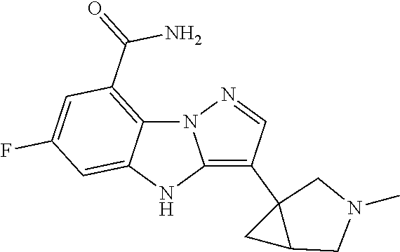 - NWBDARPJZPJEBC-UHFFFAOYSA-N CC1=N/N2C3=C(C(N)=O)C=C(F)C=C3N\C2=C\1C1(C)CCN(CC2CC2)C1 Chemical compound CC1=N/N2C3=C(C(N)=O)C=C(F)C=C3N\C2=C\1C1(C)CCN(CC2CC2)C1 NWBDARPJZPJEBC-UHFFFAOYSA-N 0.000 description 2