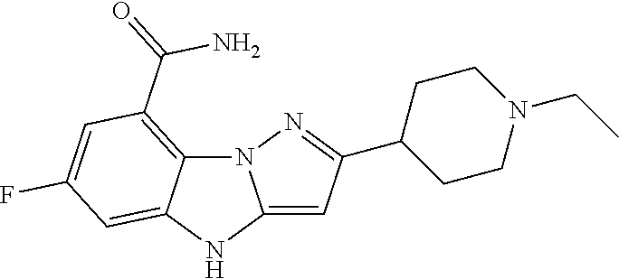 - HQQQWHXBTUIYAN-UHFFFAOYSA-N CCN1CCC(C2=C3\N(C)C4=CC(F)=CC(C(N)=O)=C4N3/N=C\2)CC1 Chemical compound CCN1CCC(C2=C3\N(C)C4=CC(F)=CC(C(N)=O)=C4N3/N=C\2)CC1 HQQQWHXBTUIYAN-UHFFFAOYSA-N 0.000 description 2