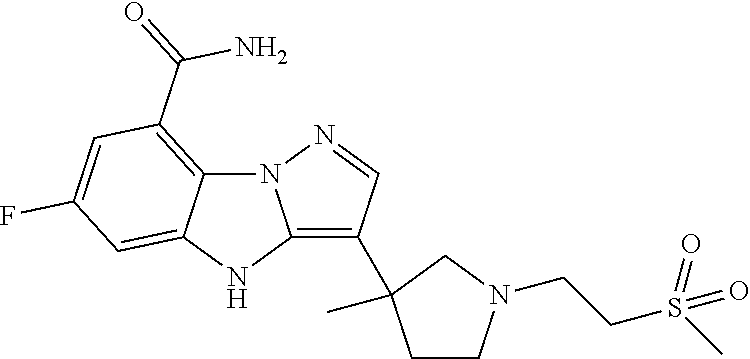 - GVXPBDBCQUSTPQ-UHFFFAOYSA-N CC1(C2=C3\NC4=CC(F)=CC(C(N)=O)=C4N3/N=C\2)CCN(CC2COC2)CC1 Chemical compound CC1(C2=C3\NC4=CC(F)=CC(C(N)=O)=C4N3/N=C\2)CCN(CC2COC2)CC1 GVXPBDBCQUSTPQ-UHFFFAOYSA-N 0.000 description 2