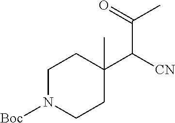 - UAONGNNCILHFPC-UHFFFAOYSA-N CC(=O)C(C#N)C1(C)CCN(C(=O)OC(C)(C)C)CC1 Chemical compound CC(=O)C(C#N)C1(C)CCN(C(=O)OC(C)(C)C)CC1 UAONGNNCILHFPC-UHFFFAOYSA-N 0.000 description 1