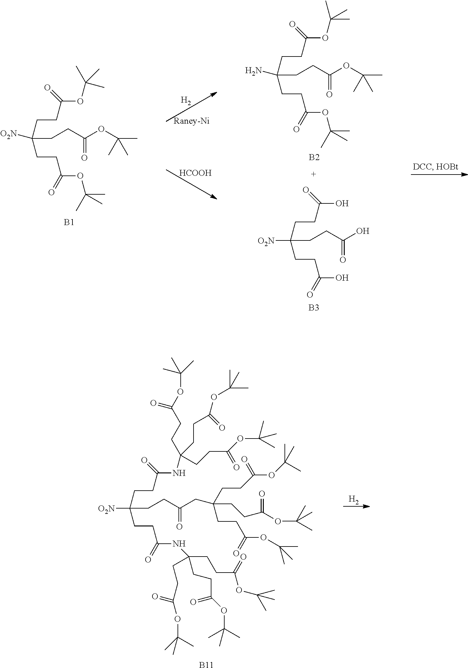 - HLPWMBUKGHLDLO-UHFFFAOYSA-N B.BB.BBB.BBB(B)B(B(B)B)B(B)B.CC(C)(C)OC(=O)CCC(CCC(=O)OC(C)(C)C)(CCC(=O)OC(C)(C)C)CC(=O)CCC(CCC(=O)NC(CCC(=O)OC(C)(C)C)(CCC(=O)OC(C)(C)C)CCC(=O)OC(C)(C)C)(CCC(=O)NC(CCC(=O)OC(C)(C)C)(CCC(=O)OC(C)(C)C)CCC(=O)OC(C)(C)C)[N+](=O)[O-].CC(C)(C)OC(=O)CCC(CCC(=O)OC(C)(C)C)(CCC(=O)OC(C)(C)C)[N+](=O)[O-].CC(C)(C)OC(=O)CCC(N)(CCC(=O)OC(C)(C)C)CCC(=O)OC(C)(C)C.O=C(O)CCC(CCC(=O)O)(CCC(=O)O)[N+](=O)[O-].O=CO.[HH].[HH] Chemical compound B.BB.BBB.BBB(B)B(B(B)B)B(B)B.CC(C)(C)OC(=O)CCC(CCC(=O)OC(C)(C)C)(CCC(=O)OC(C)(C)C)CC(=O)CCC(CCC(=O)NC(CCC(=O)OC(C)(C)C)(CCC(=O)OC(C)(C)C)CCC(=O)OC(C)(C)C)(CCC(=O)NC(CCC(=O)OC(C)(C)C)(CCC(=O)OC(C)(C)C)CCC(=O)OC(C)(C)C)[N+](=O)[O-].CC(C)(C)OC(=O)CCC(CCC(=O)OC(C)(C)C)(CCC(=O)OC(C)(C)C)[N+](=O)[O-].CC(C)(C)OC(=O)CCC(N)(CCC(=O)OC(C)(C)C)CCC(=O)OC(C)(C)C.O=C(O)CCC(CCC(=O)O)(CCC(=O)O)[N+](=O)[O-].O=CO.[HH].[HH] HLPWMBUKGHLDLO-UHFFFAOYSA-N 0.000 description 1