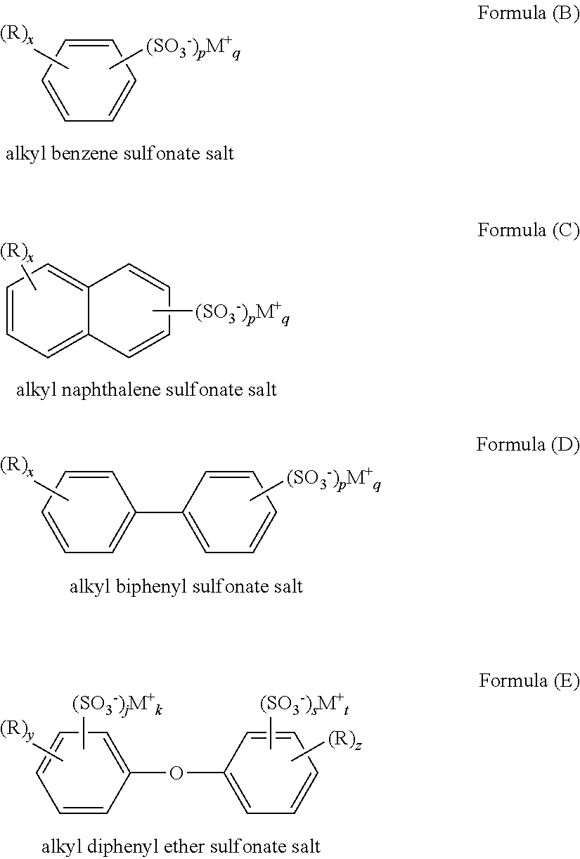 - C11D1/22—Sulfonic acids or sulfuric acid esters; Salts thereof derived from aromatic compounds