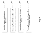 In certain embodiments, removing areas of the semiconductor substrate is performed by etching the hard mask material and the semiconductor substrate. Any suitable etchant can be used to etch the hard mask material and the semiconductor substrate.