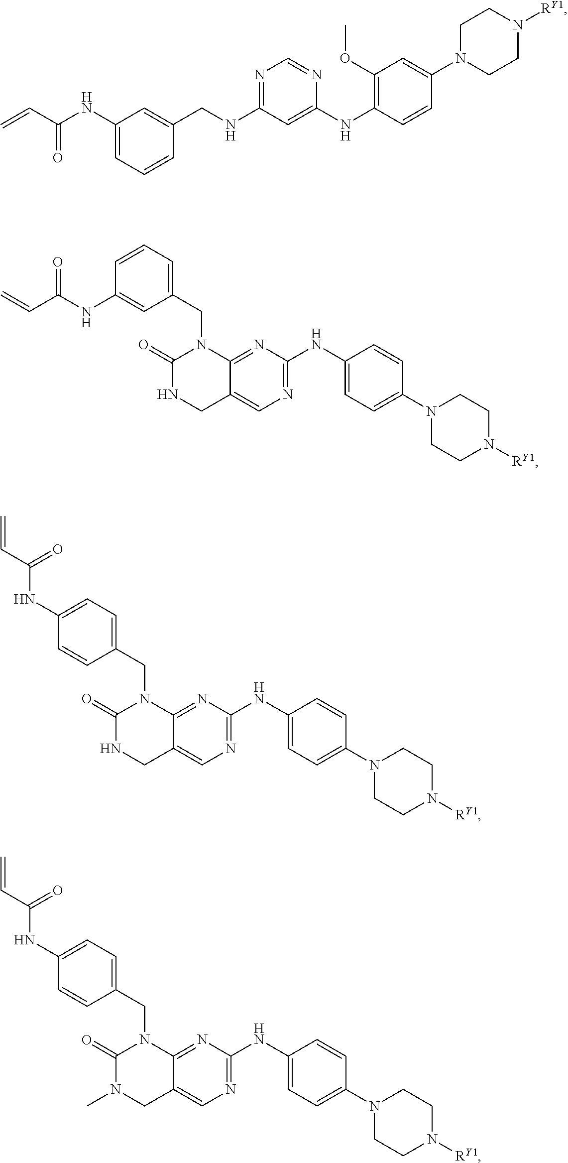 - DPTNOQDOCOEDNJ-UHFFFAOYSA-N C=C(C)C(=O)CC1=CC(CNC2=C(Cl)C=NC(NC3=CN(C)N=C3)=N2)=CC=C1.C=CC(=O)CC1=C(F)C=CC(CNC2=NC(NC3=CN(C)N=C3)=NC=C2Cl)=C1.C=CC(=O)CC1=CC(CNC2=C(Cl)C=NC(NC3=CN(C)N=C3)=N2)=CC=C1.C=CC(=O)CC1=CC(CNC2=C(Cl)C=NC(NC3=CN(C)N=C3)=N2)=CC=C1.C=CC(=O)CC1=CC(CNC2=C(Cl)C=NC(NC3=CN(C)N=C3C)=N2)=CC=C1.C=CC(=O)CC1=CC(CNC2=NC(NC3=CN(C)N=C3)=NC=C2Cl)=CC=C1.C=CC(=O)CC1=CC=CC(CN(C)C2=NC(NC3=CN(C)N=C3)=NC=C2Cl)=C1.C=CC(=O)CC1=CC=CC(CSC2=NC(NC3=CN(C)N=C3)=NC=C2Cl)=C1.C=CC(=O)NC1=CC=C(CNC2=NC(NC3=CN(C)N=C3)=NC=C2Cl)C=C1 Chemical compound C=C(C)C(=O)CC1=CC(CNC2=C(Cl)C=NC(NC3=CN(C)N=C3)=N2)=CC=C1.C=CC(=O)CC1=C(F)C=CC(CNC2=NC(NC3=CN(C)N=C3)=NC=C2Cl)=C1.C=CC(=O)CC1=CC(CNC2=C(Cl)C=NC(NC3=CN(C)N=C3)=N2)=CC=C1.C=CC(=O)CC1=CC(CNC2=C(Cl)C=NC(NC3=CN(C)N=C3)=N2)=CC=C1.C=CC(=O)CC1=CC(CNC2=C(Cl)C=NC(NC3=CN(C)N=C3C)=N2)=CC=C1.C=CC(=O)CC1=CC(CNC2=NC(NC3=CN(C)N=C3)=NC=C2Cl)=CC=C1.C=CC(=O)CC1=CC=CC(CN(C)C2=NC(NC3=CN(C)N=C3)=NC=C2Cl)=C1.C=CC(=O)CC1=CC=CC(CSC2=NC(NC3=CN(C)N=C3)=NC=C2Cl)=C1.C=CC(=O)NC1=CC=C(CNC2=NC(NC3=CN(C)N=C3)=NC=C2Cl)C=C1 DPTNOQDOCOEDNJ-UHFFFAOYSA-N 0.000 description 1