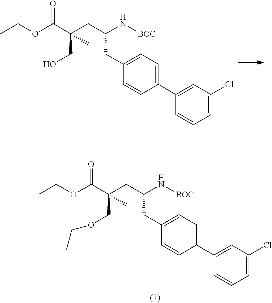 - QLNBEIRHYBPDLY-GCJKJVERSA-N CCOC(=O)[C@](C)(COC)C[C@H](N)CC1=CC=C(C2=CC(Cl)=CC=C2F)C=C1 Chemical compound CCOC(=O)[C@](C)(COC)C[C@H](N)CC1=CC=C(C2=CC(Cl)=CC=C2F)C=C1 QLNBEIRHYBPDLY-GCJKJVERSA-N 0.000 description 3