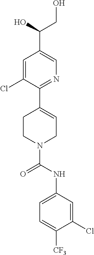 - AZJAVWVAVKENKQ-MRXNPFEDSA-N OC[C@H](c1cc(F)c(C(CC2)=CCN2C(Nc(cc2Cl)ccc2OC(F)(F)F)=O)nc1)O Chemical compound OC[C@H](c1cc(F)c(C(CC2)=CCN2C(Nc(cc2Cl)ccc2OC(F)(F)F)=O)nc1)O AZJAVWVAVKENKQ-MRXNPFEDSA-N 0.000 description 2