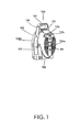 - hand-held housing 102 has first and second opposing lateral side surfaces 104 a, 104 b, a base surface 106 , and an arcuate intermediate surface 107 that interconnects first and second lateral side surfaces 104 a, 104 b.