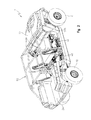 As shown in FIG. 30, engine 604 is operably coupled to rear differential 608 through transmission 602 and rear drive shaft 612. Rear differential 608 is supported on rear axle 470 and drive rear wheels 10 according to an output from transmission 602. Rear drive shaft 612 generally extends in the direction of longitudinal axis L of vehicle 2 (see FIG. 6). Also, as best shown in FIG. 29, rear drive shaft 612 extends at a generally downward angle toward rear differential 608, such that a front portion 612 a of rear drive shaft 612 is elevated relative a rear portion 612 b of rear drive shaft 612.