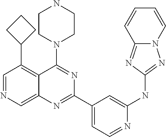 - 5-Cyclobutyl-4-piperazin-1-yl-2-[2-(1-trifluoromethyl-cyclobutyl)-1H-pyrrollobutyl)[2,3-b]pyridin-4-yl]-pyrido[3,4-d]pyrimidine;