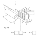 FIG. 1B illustrates an ink jet printing assembly 3. The ink jet printing assembly 3 comprises a support that is configured to support an image receiving member 2. The support is shown in FIG. 1B as a platen 1, but alternatively, the support may be a flat surface. The platen 1, as depicted in FIG. 1B, is a rotatable drum, which is rotatable about its axis as indicated by arrow A. The support may be optionally provided with suction holes for holding the image receiving member in a fixed position with respect to the support. The ink jet printing assembly 3 comprises print heads 4 a-4 d, mounted on a scanning print carriage 5. The scanning print carriage 5 is guided by suitable guides 6, 7 to reciprocate in the main scanning direction B. Each print head 4 a-4 d comprises an orifice surface 9, which is provided with at least one orifice 8. The print heads 4 a-4 d are configured to eject droplets of marking material onto the image receiving member 2. The platen 1, the carriage 5 and the print heads 4 a-4 d are controlled by suitable controls 10 a, 10 b and 10 c, respectively.