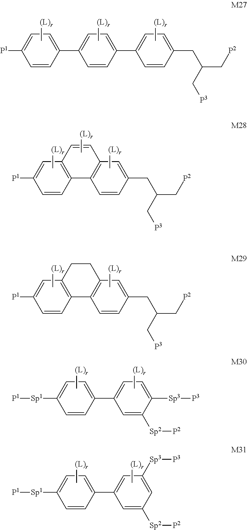As used herein, the terms “reactive mesogen” and “RM” will be understood to mean a compound containing a mesogenic or liquid crystalline skeleton, and one or more functional groups attached thereto which are suitable for polymerization and are also referred to as “polymerizable group” or “P”.