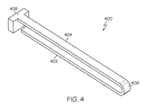 While the embodiments of FIGS. 1, 2A, 2B, 3A, and 3B depict the curved diode heat pipe 100 with the non-condensable gas reservoir 108 may be relatively flat and substantially coplanar with the condenser section 104, the embodiment of FIG. 4 (as well as FIGS. 5A and 5B) depicts that the perpendicular non-condensable gas reservoir 408 is disposed substantially perpendicular to the evaporator section 402 and/or the condenser section 404. Additionally, the perpendicular non-condensable gas reservoir 408 may be coupled to and in fluid communication with the condenser section 404, with a gap (or other material) separating the perpendicular non-condensable gas reservoir 408 and the evaporator section 402. Accordingly, the embodiments of FIG. 4 may utilize a larger area of the condenser section 404 for dissipating heat.