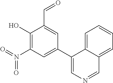 - AKRDISAFPVXTIL-UHFFFAOYSA-N O=CC1=CC(C2=CN=CC3=CC=CC=C32)=CC([N+](=O)[O-])=C1O Chemical compound O=CC1=CC(C2=CN=CC3=CC=CC=C32)=CC([N+](=O)[O-])=C1O AKRDISAFPVXTIL-UHFFFAOYSA-N 0.000 description 3