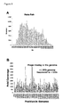 FIG. 32. Validation of Polonator DNA sequencing image. (A) The DPePCR beads were sequenced using sequencing by ligation. Green, red and blue beads relate to A, T and C, respectively, in the image shown. Note, the images are displayed in RGB for visualization, and the forth base is present, just not shown. For example, the sequence from bead 1 is CTT; bead 2 is TAC from the three cycles shown. (B) The tetrahedral plot is used for the base calling. Each dot on the plot corresponds to a single bead at one cycle in the sequencing. The normalized fluorescent intensity in all four channels is plotted in 4D and displayed here in a 3D plot. The base is called by the highest intensity value. The quality each call is defined as the distance from each bead to the centroid of the beads that have been called the same base. Since each of the beads is a clonal amplicon, the data points are clustered into 4 groups. The top 50% of the data from a single frame is shown in the figure. (C) The histogram shows the average separation in the genome is about 100 bases, of a random sampling of ˜20,000 reads that mapped uniquely to the Streptococcus pyogenes genome (AE014074). Thus, the beads are clonal amplicons of ˜100 bp fragments from the S. pyogenes genome.