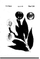 The accompanying photographs show typical specimens of the foliage and fruit of the new variety. The upper and lower surface of the leaves being illustrated and the exterior and sectional view of the fruit with a fruit divided in its suture plane to reveal flesh coloration with a stone remaining in place. The illustrations were taken shortly after being picked at maturity (shipping ripe) and the colors are as nearly true as reasonable possible in a color representation of this type.