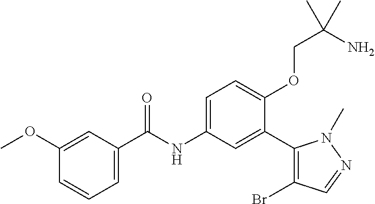 - NHUJFLSSWXKQTH-UHFFFAOYSA-N COC1=CC2=C(C=C1OC)CN(C(=O)NC1=CC=C(OCCN)C(C3=C(Br)C=NN3C)=C1)CC2 Chemical compound COC1=CC2=C(C=C1OC)CN(C(=O)NC1=CC=C(OCCN)C(C3=C(Br)C=NN3C)=C1)CC2 NHUJFLSSWXKQTH-UHFFFAOYSA-N 0.000 description 2