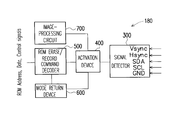 - the activation device further includes a monitor-in-system reprogramming initialization circuit for producing a select signal after receiving the start signal, as well as an erase/record pathway isolator for switching over connection from the video pathway to the erase/record pathway after receiving the select signal and transmitting the erase/record commands and data via the erase/record pathway.