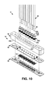 • the signal contacts are surrounded by a number of ground contacts that connect either the conductive anchor block or the cable shield to the device in a pattern that closely mimics the impedance environment of the cable.