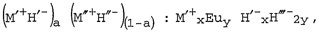 - M is at least one alkali metal ion from the group Na, K, Rb and Cs , H ⁇ at least one halide from the group F, Cl, Br and I and S at least one lanthanide ion from the Group La, Ce, Pr, Nd, Pm, Sm, Eu, Gd, Tb, Dy, Ho, Er, Tm, Yb or Lu.